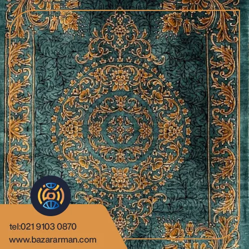 فرش ۴۰ در ۶۰ سبز زمردی نقشه ورساچه برند مرادی تمام ابریشم قم کد : ۲۱۳۳