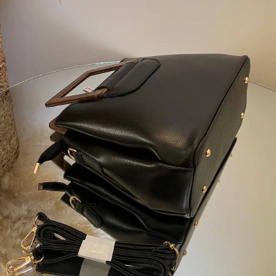 قسمت پشت کار و یک جیب بزرگ مگنتی قسمت جلو کار قرار داره بند بلند دوشی قابل تنظیم هم داره جنس چرم صنعتی