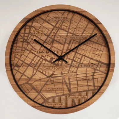 اگر شما هم آن دسته از افرادی هستید که به دیزاین خانه و یا فضای محل کار خود اهمیت زیادی میدهید این ساعت دیواری خاص میتواند گزینه بسیار خوبی برای مجموعه دکوراسیون شما باشد چرا که طرح ساعت، نوع چوب و رگه ها و نقش و نگار آن علاوه بر زیبایی بخشیدن به فضا میتواند به آن روح نیز ببخشد.ساعت دیواری چوب راش طرح پلان شهری نیویورک مناسب و هماهنگ با انواع فضاهای مینیمال و مدرن بوده و به راحتی میتوان از آن برای دکور فضاهای اصلی خانه مثل پذیرایی و اتاق خواب ها، فضاهای محل کار مثل دفاتر و شرکت ها و حتی فضاهای کافه و رستوران استفاده کرد.